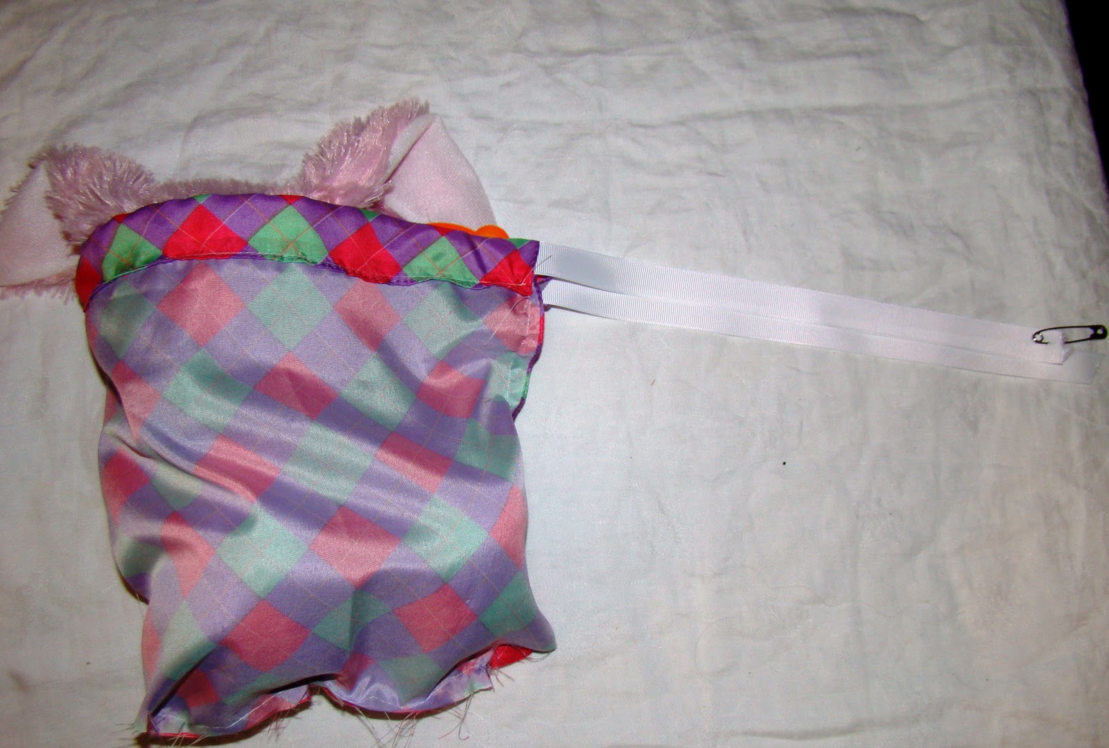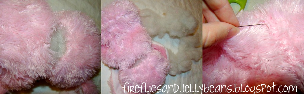 4. Now we are going to take some stuffing out of the plush toy to make it fit on the backpack better.