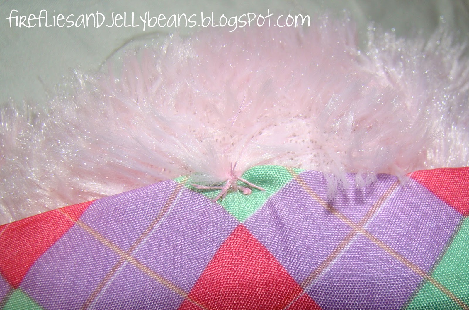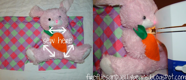 Since we took out the stuffing it is do-able... you have to stuff it in your machine... and you feel a little weird about sewing across the bunny's neck, but it is for a cute cause so you move on!
