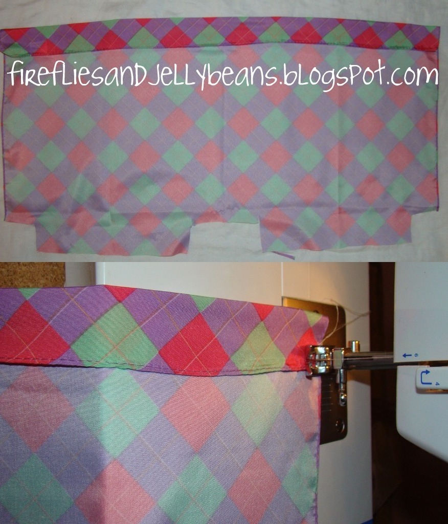 Flip your bandanna over to the back side and fold down 1/2 and inch bigger then your ribbon. My ribbon was 5/8th of an inch so my casing was about an inch.