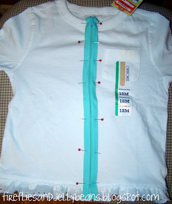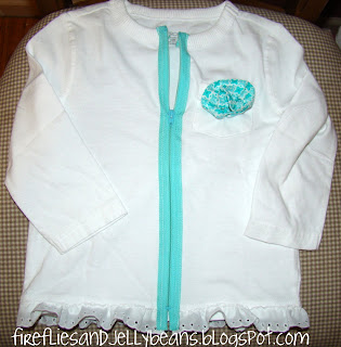 I then sewed it to the bottom of my shirt using a zig-zag stitch... I had the ends meet in the middle of the front where the zipper is going to be placed. (Sorry I worked too fast to take a picture of this part)