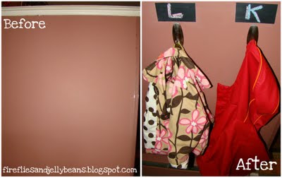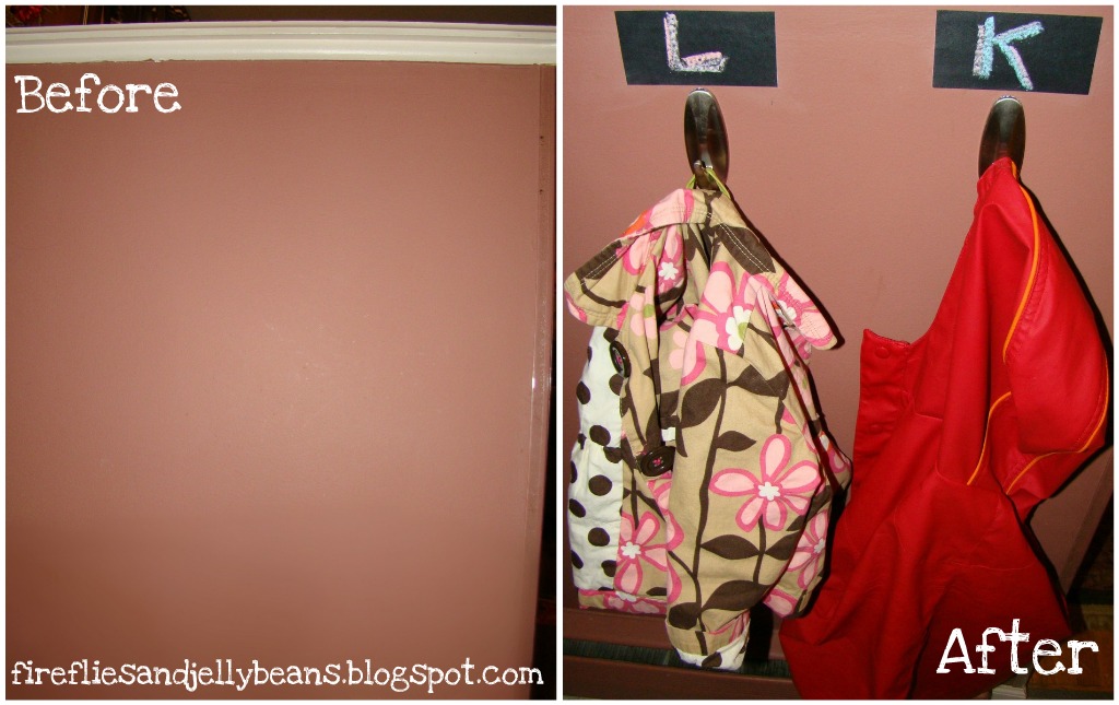 Here is a SUPER quick project! Coat hooks with chalkbaord vinyl! It is SOOOO EASY!