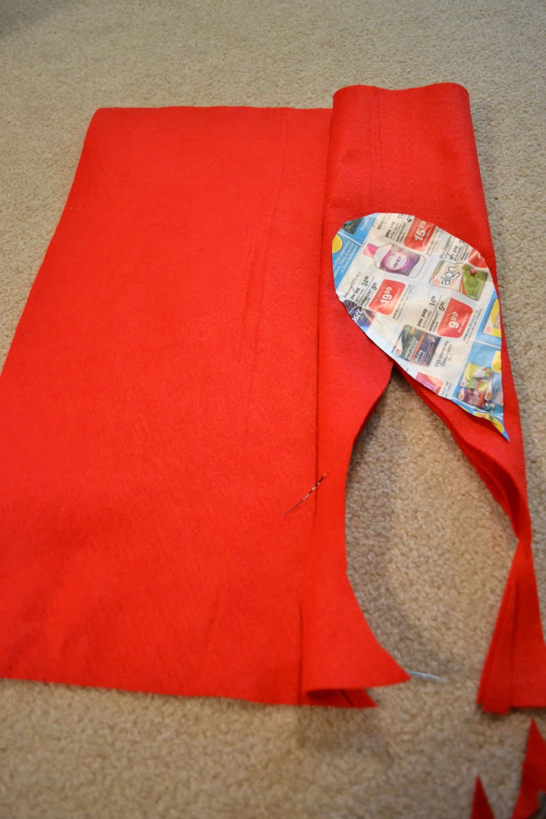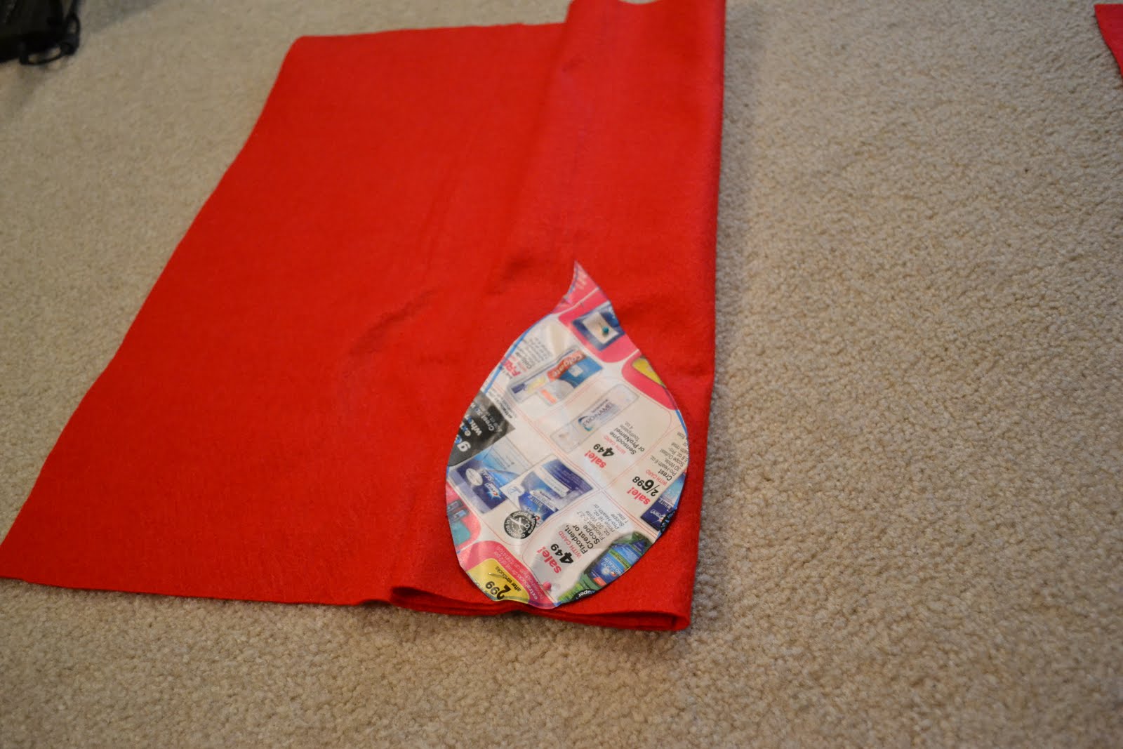 I purchased 5/8 of yard of Felt for my project. I chose felt because it leaves a nice edge that you don't need to finish.