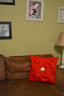 I have fallen in love with all the throw pillows that have huge flowers sewn on them. They are so flirty and fun. So I decided to make one with a Christmas theme.