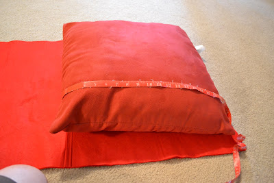 I started by measuring the pillow I had, in this case 21" square, then adding an inch to give room for me to sew a seam. So I cut one square that was 22"x22" for my front pillow piece. (Your measurements will be for the pillow you have.)