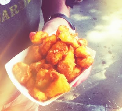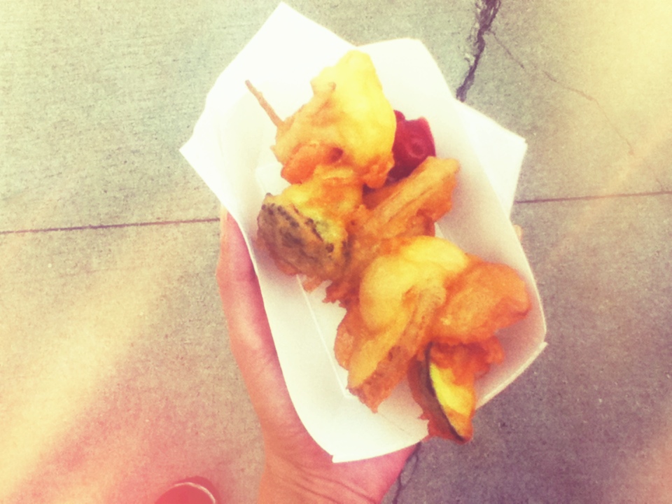 this is the "health food" of the day! Veggies dipped in batter and fried... the best way to get your daily veggies!