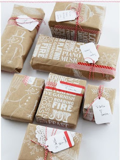 I love the brown paper packages look for gift wrap. Here are some fun ideas add to the brown wrapping to personalize the gift!