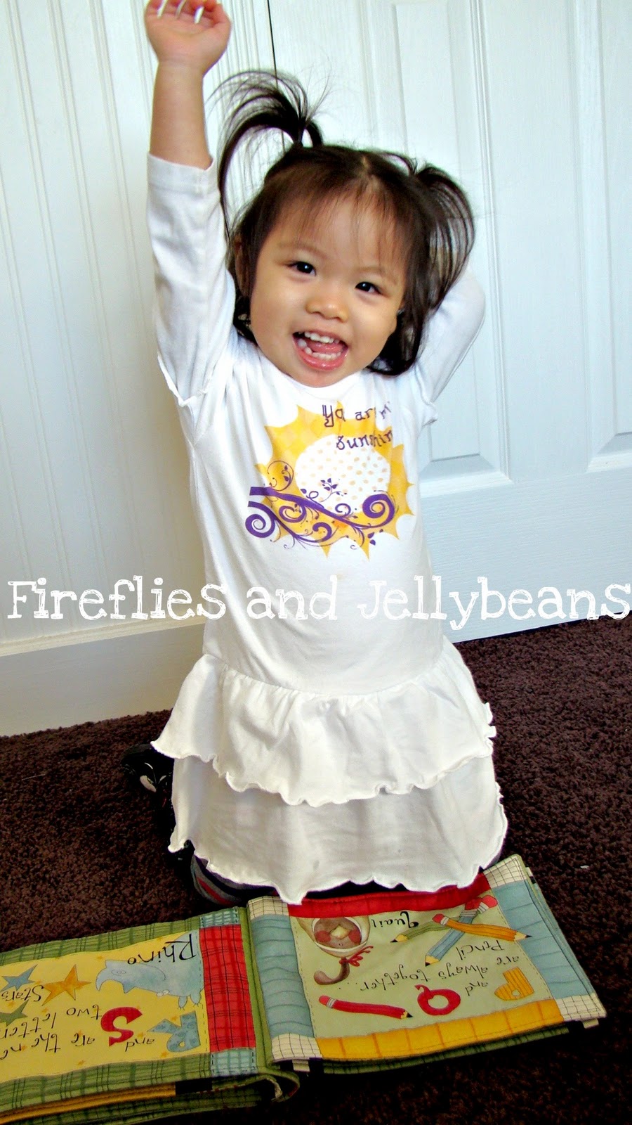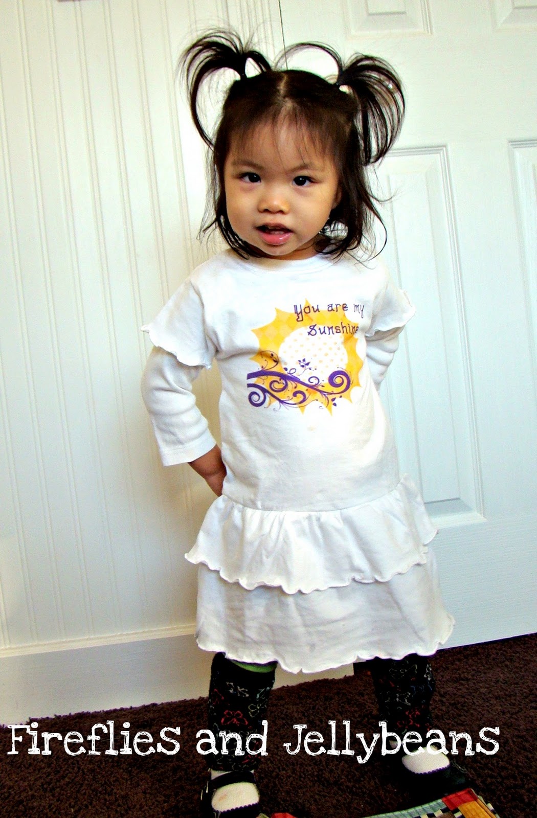 I was lucky enough to be able to sample a toddler dress for my daughter. My Daughter's name means "Sunshine and Happiness". So I created this graphic for her toddler dress to embrace her namesake! {Feel free to download the graphic for personal use! You can use it as a print or on your own toddler dress!}