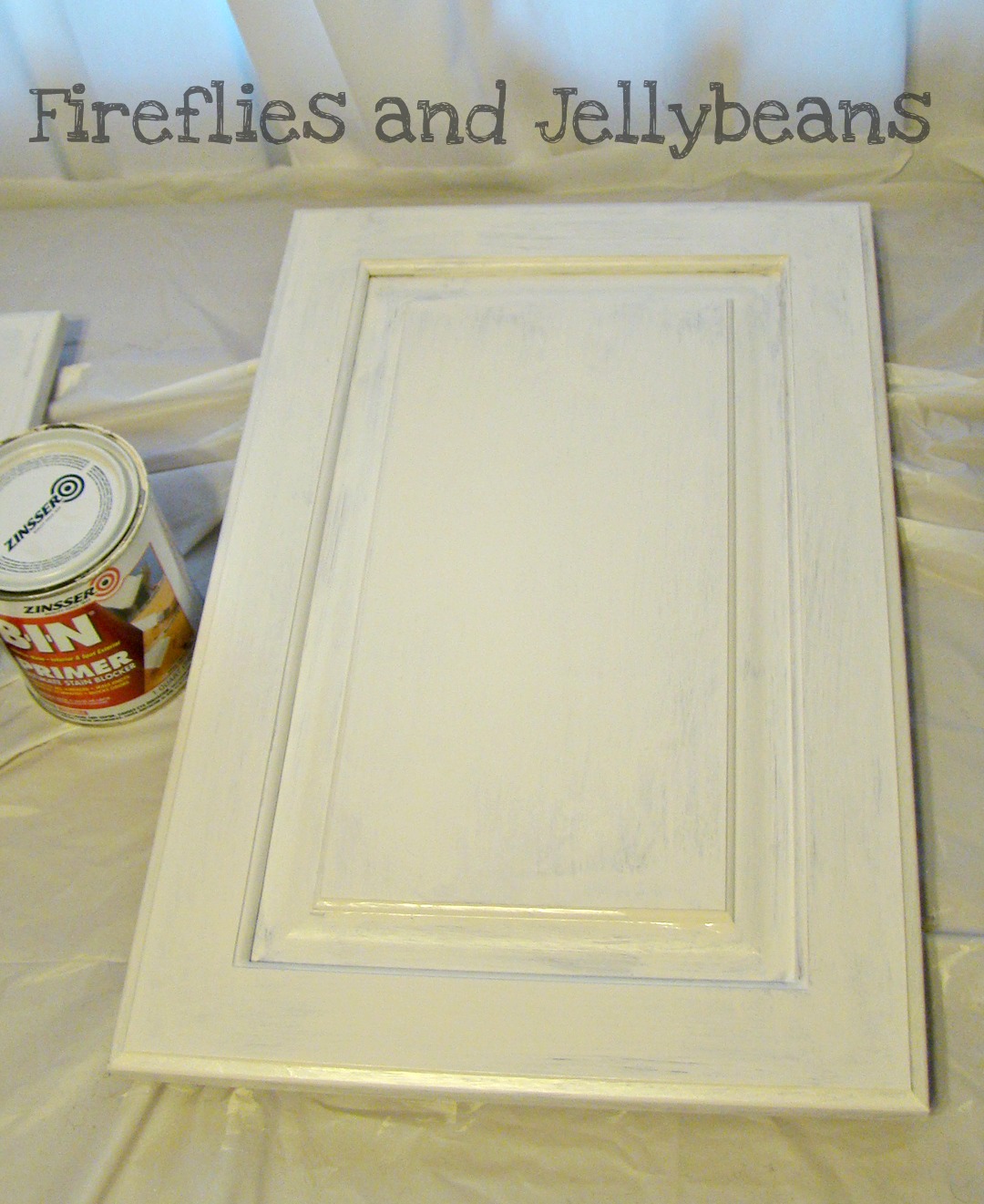 First I primed the cupboard door.