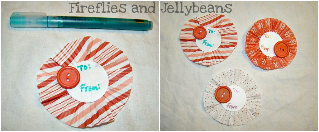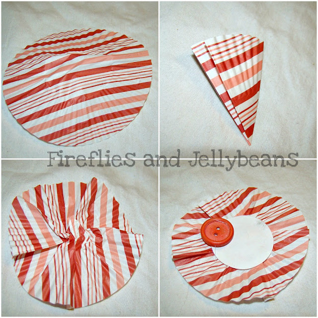 I used Cupcake wrappers, card stock, hole punch, Glitter markers, and buttons.