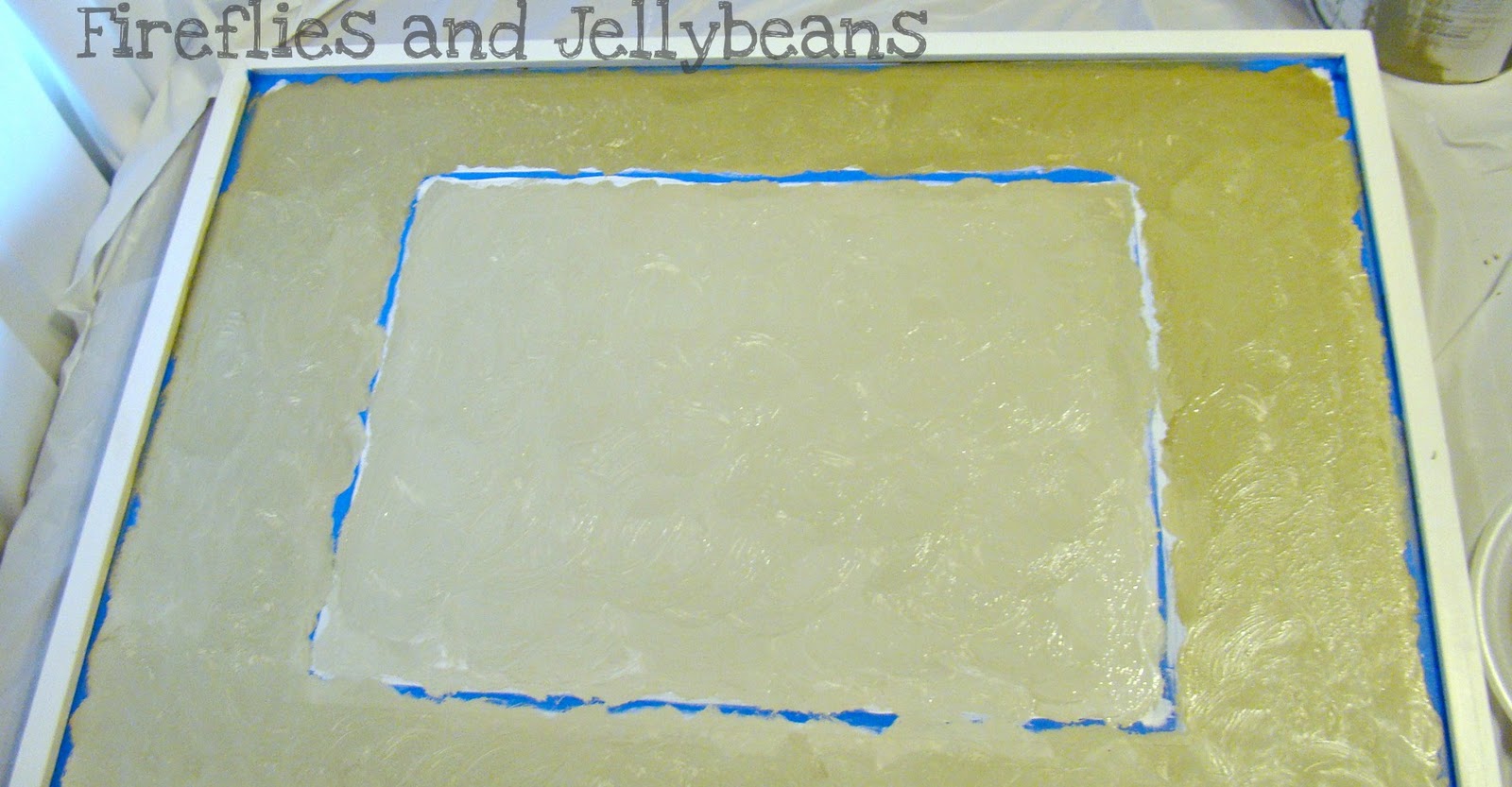 I wanted to make the inside rectangle more contrasting to the mat so I decided to put some stain over the top of that part to make it look darker. I taped paper towels around the edge so that no stain would get on the out side edge.