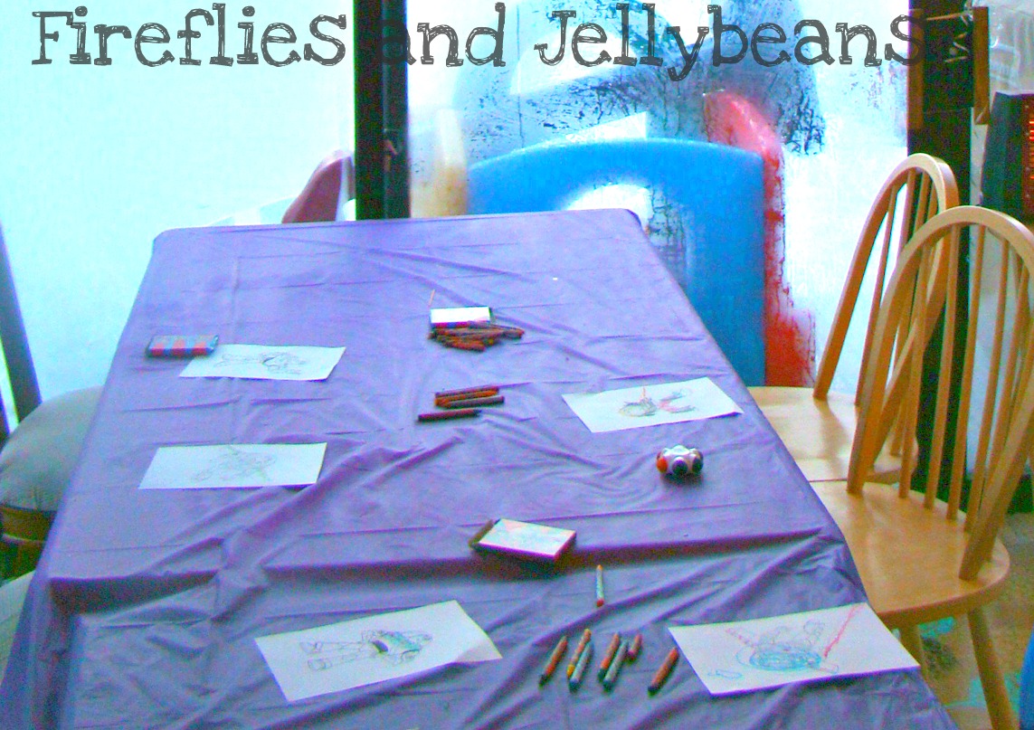 We had coloring sheets out (from online) as the kids arrived to give them something to do right away. We also collected several Buzz Lightyear toys (mostly from thrift stores) set out to play with as well.