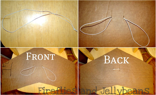 Cut two slits in the middle of the ranger wings and put your elastic loop through it to make two arm holes.