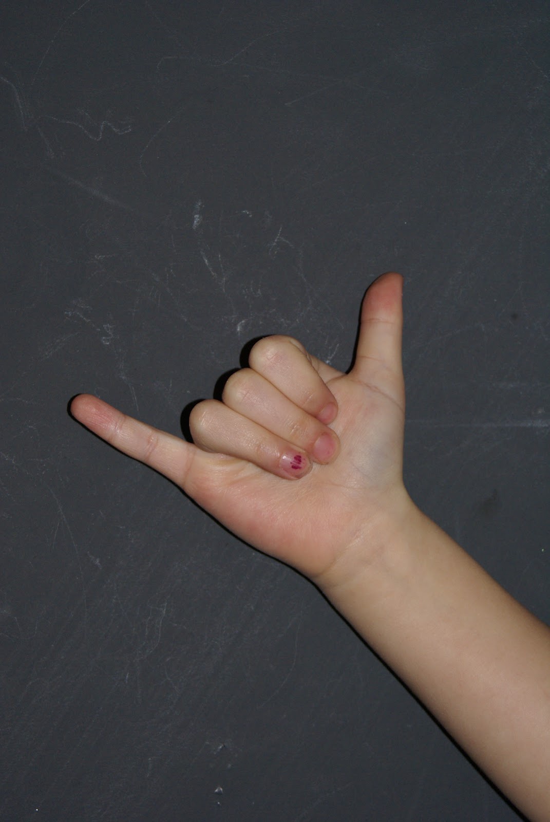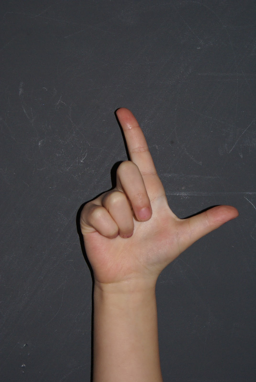 1. If you are not fluent in American Sign Language, you may have to do some research on how to make the letter signs. Here is the website I used. I just did a Google search for "ASL letters." If you know the letters, then skip this step. Or you can copy mine!