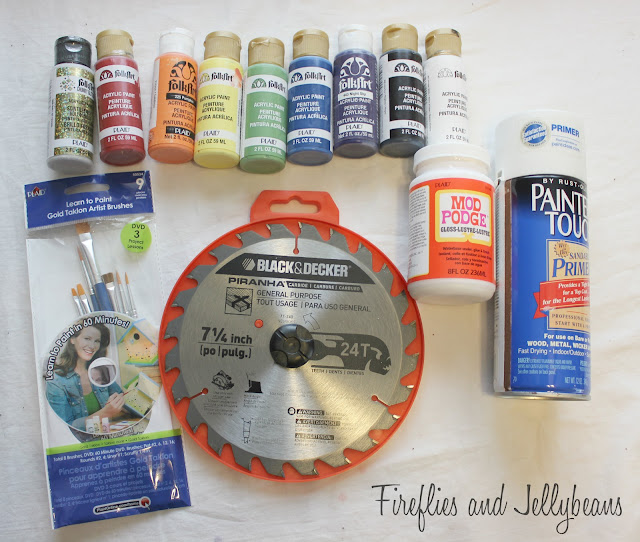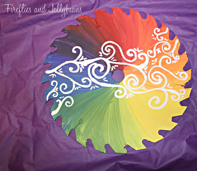 I was looking for something unusual to paint on, so I wandered into the hardware section. The saw blades caught my eye so I grabbed one and took it home to paint... the shape is so cool. I think I may make it into a clock!