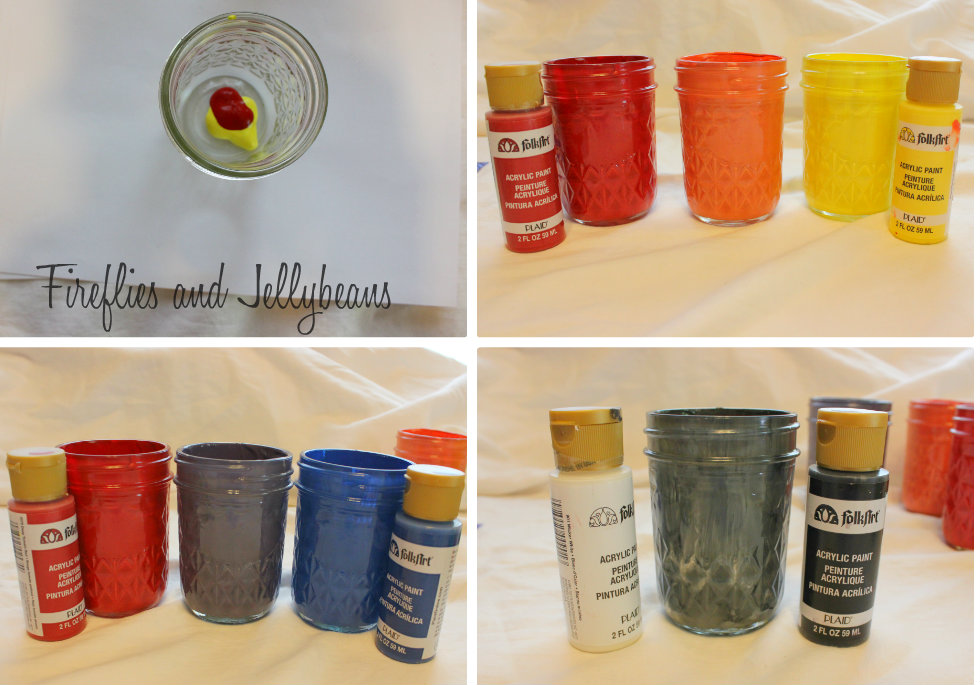If you don't have a color you can always mix paint to get the color that you need... that is what I did to get orange, purple and gray! I did all my mixing right in the jar!