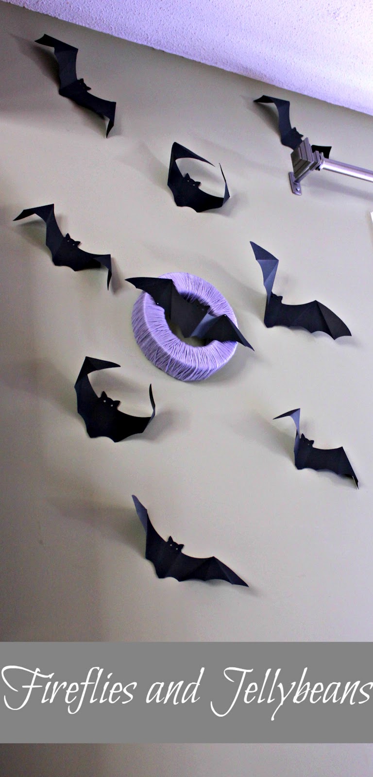 And you are done! Quick and easy and it gives a big and fun effect! I love how the bats make shadows on the wall. My son LOVES it because he is really into bat man and he says it is like living in the bat cave. :)