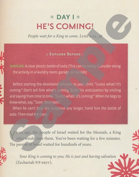 Every day ends with a prayer and a Christmas Count down cheer! It is the perfect way for your family to learn about the coming of Christ!