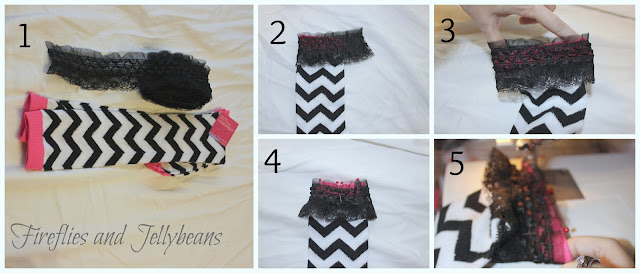 5. Sew your lace around the sock- stretching it as your go. Use a zig-zag or stretch stitch.