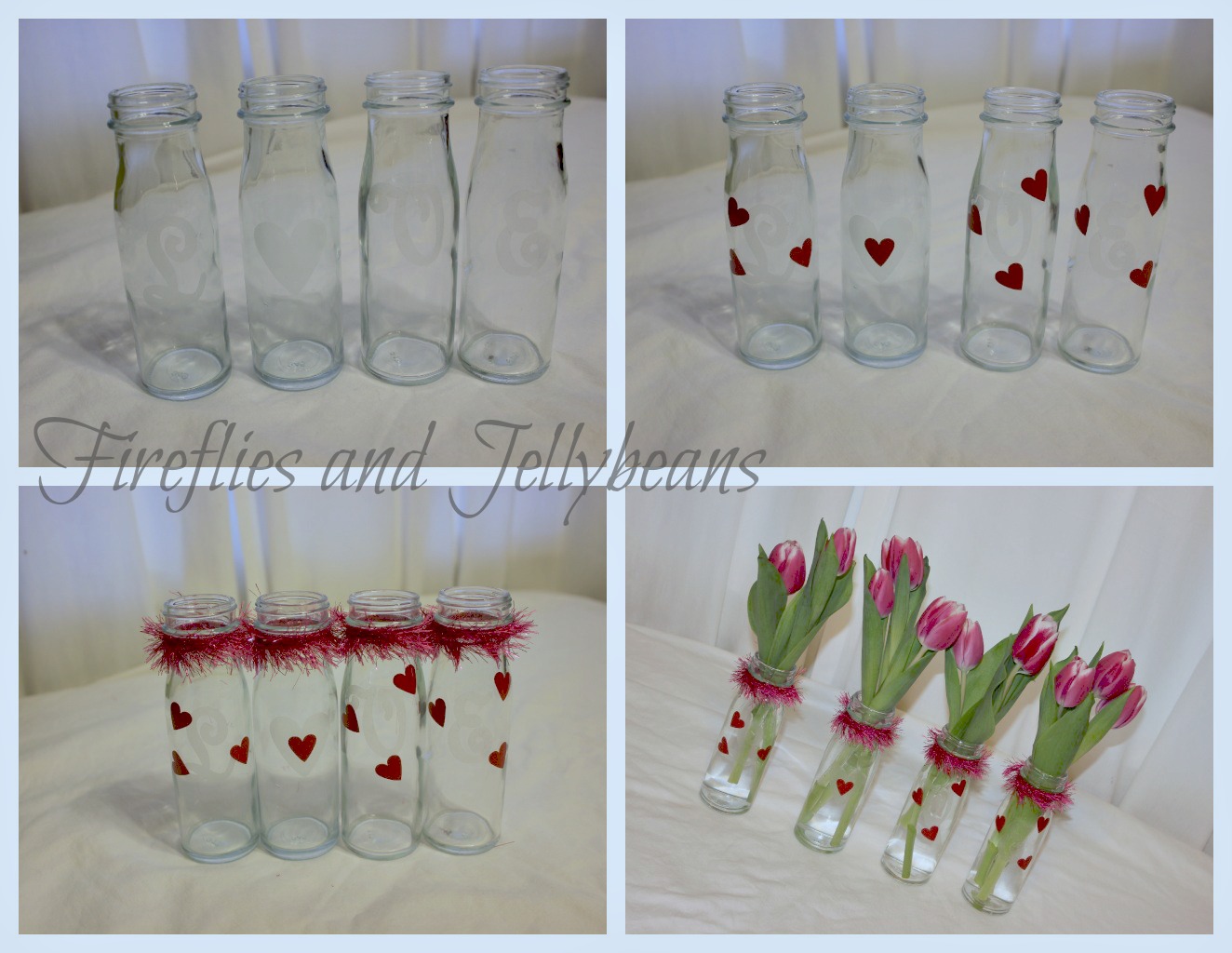 1. I cut out the letters L O V E out of my glass etched vinyl and placed them on my vases This stuff is great! It looks just like etched glass but it is vinyl- no mess and I can remove it if I want to later too!