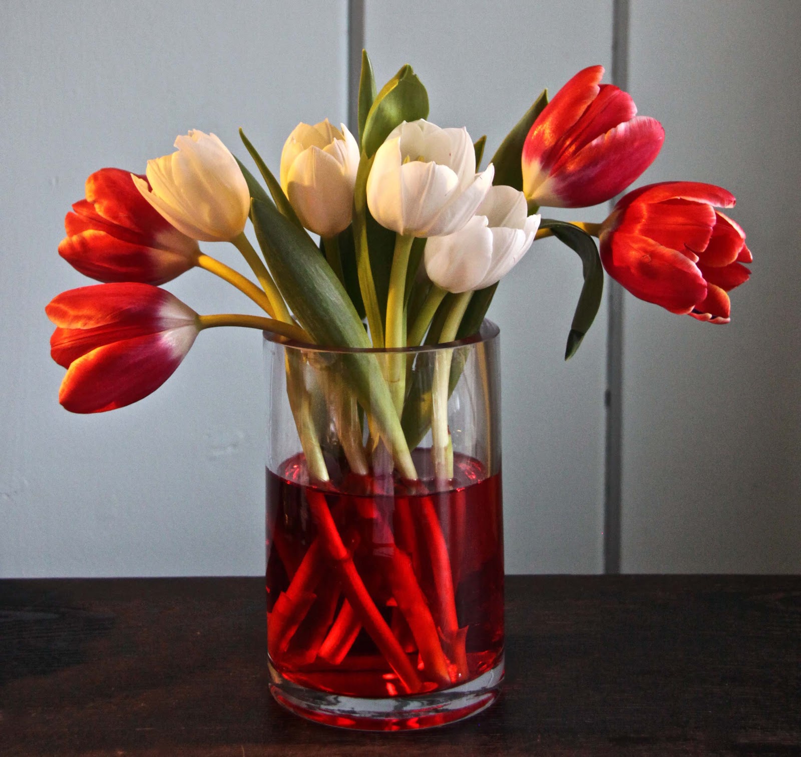 Tulips are my favorite flower. I love the simplicity of them! Give me tulips over roses any day! Tulips are easy to take care of and last up to a week! That is my kind of flower! So for Valentine's Day I would much rather get a bunch of tulips over any other flowers. So this Valentine's day I challenge you to think outside the box and use cut tulips in you decor! I did and i LOVE the results!