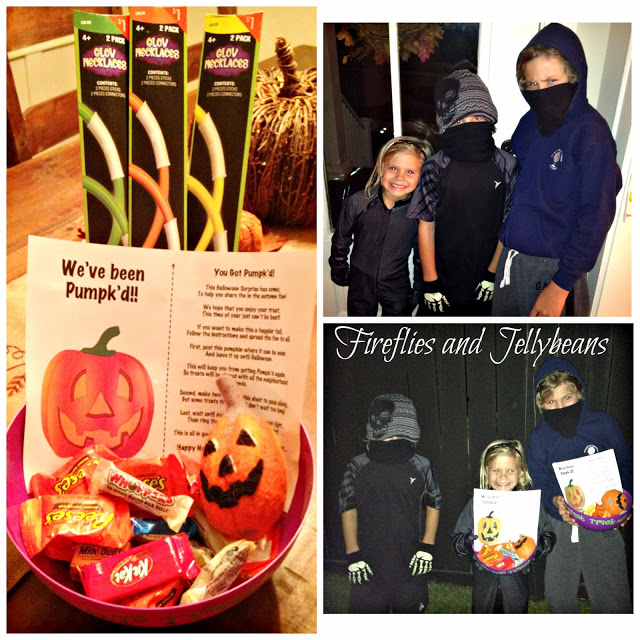 We don't like to do scary... it is just - well, too scary for us! We still like to participate in halloween, so, my sister came up with an alternative to "you got boo'ed"- You Got Pumpk'd! We liked the idea of having pumpkins on everyone's door instead of ghosts. My sister and her kids Pumpk'd some friends this weekend and being a good blogging sister she took pictures for me!