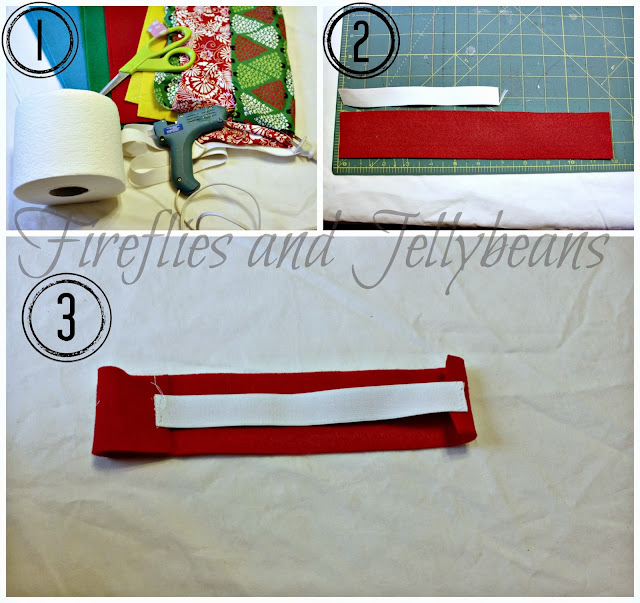 1. You will need: Felt, scissors, elastic, glue gun, sewing machine, and Toilet paper.