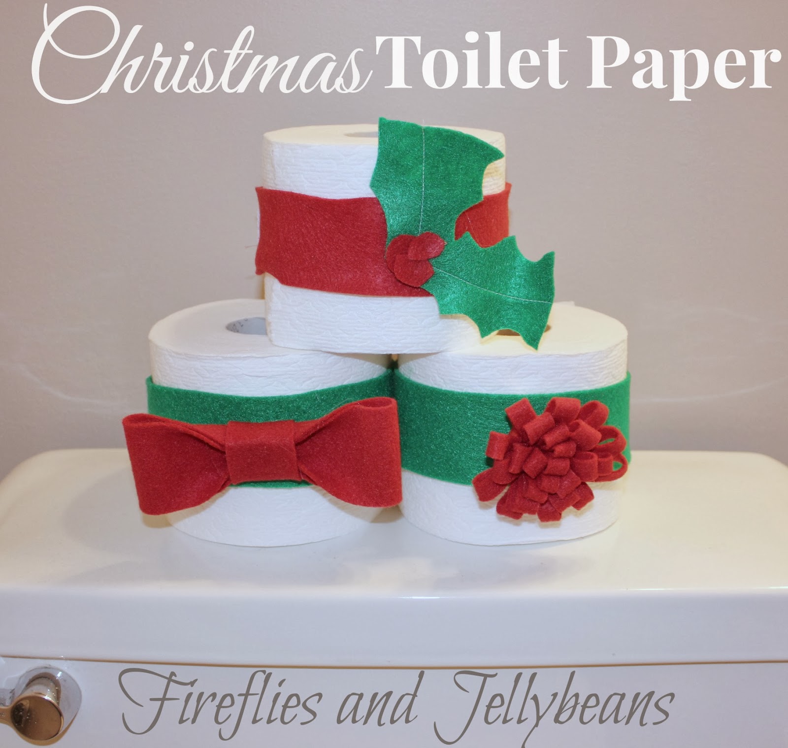 I like to leave a few rolls on the back of the toilet... and since it is Christmas time they got a holiday make over!