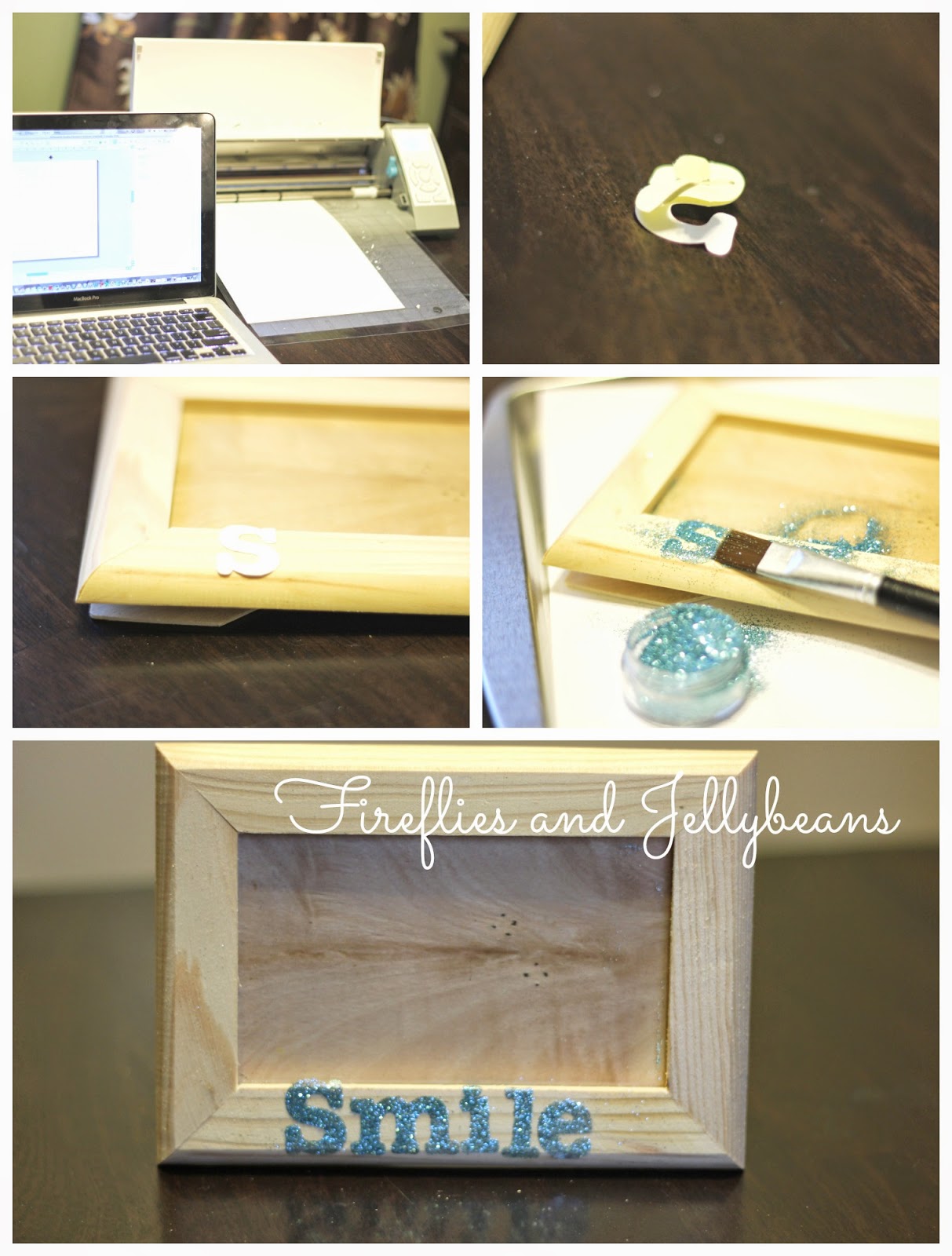 4. Spread glitter over the shapes and wipe off the excess. The brush really helped get the glitter over the letters really nicely.