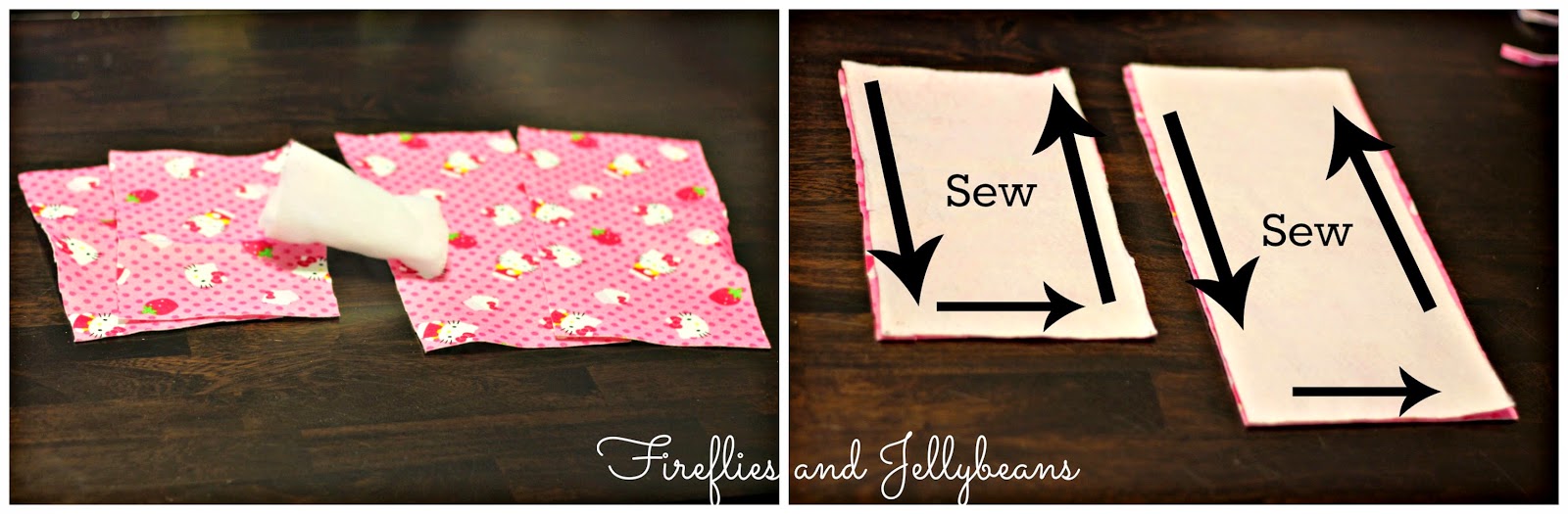 1. Cut out your fabric. Cut two 12.5X6 rectangles and two 9.5X6 rectangles