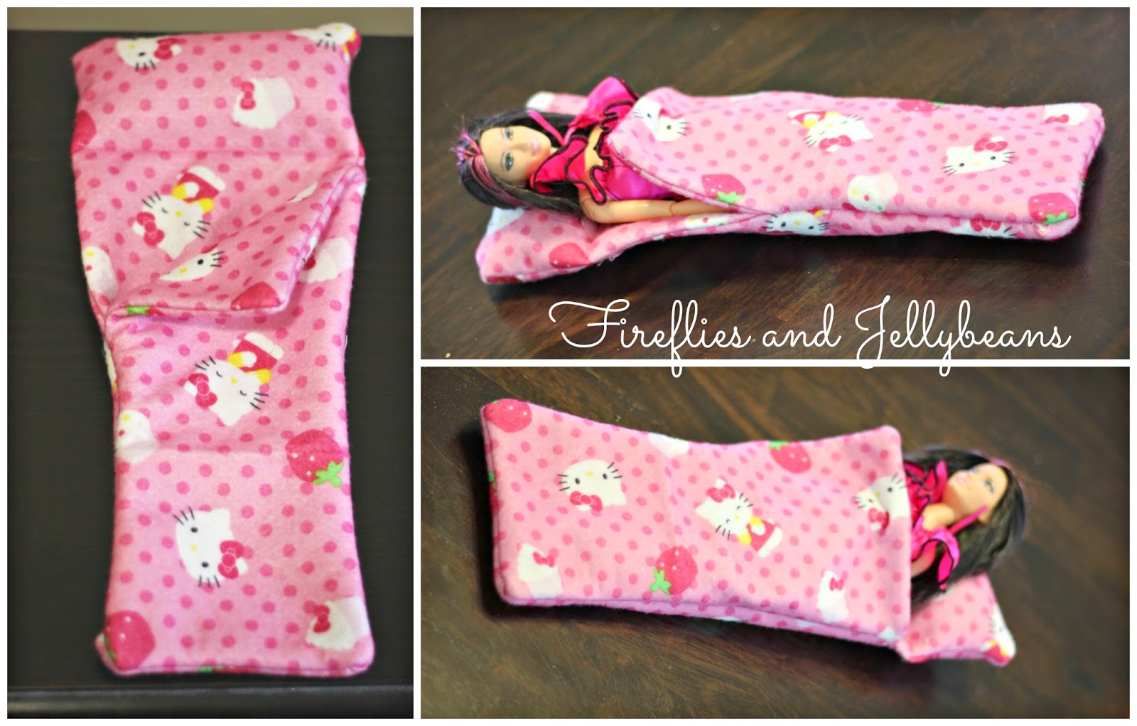 My kids are obsessed with putting things to sleep. Baby-dolls, Teddy Bears, stuffed animals, transformers - you name it and they will put it down for a nap! I ofter hear "Shhhhh, mom - my transformer is sleeping" So, I decided to make a sleeping bag for my daughter's barbie dolls.
