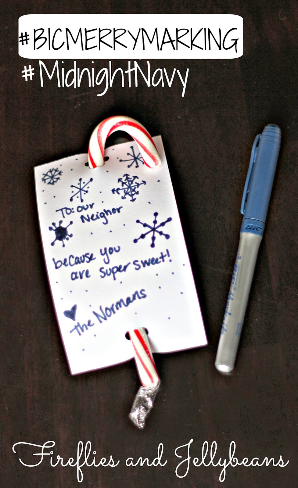 Now it is time to spread some cheer! Make a super easy neighbor gift using #MidnightNavy. Use an index card and punch a hole on the top and bottom. Decorate and put on a candy cane and you have the perfect gift to leave on your neighbor's door!