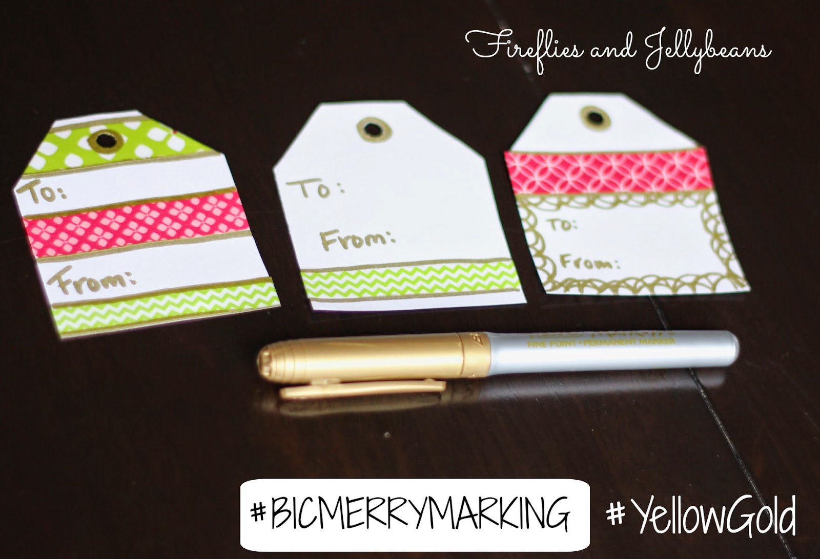 I used the metallic #PlatinumSilver to dazzle this gift. Just wrap a gift with white or kraft paper and use your BIC Mark-It™ markers to decorate. You can use stencils or just free hand! It also works great on gift bags!