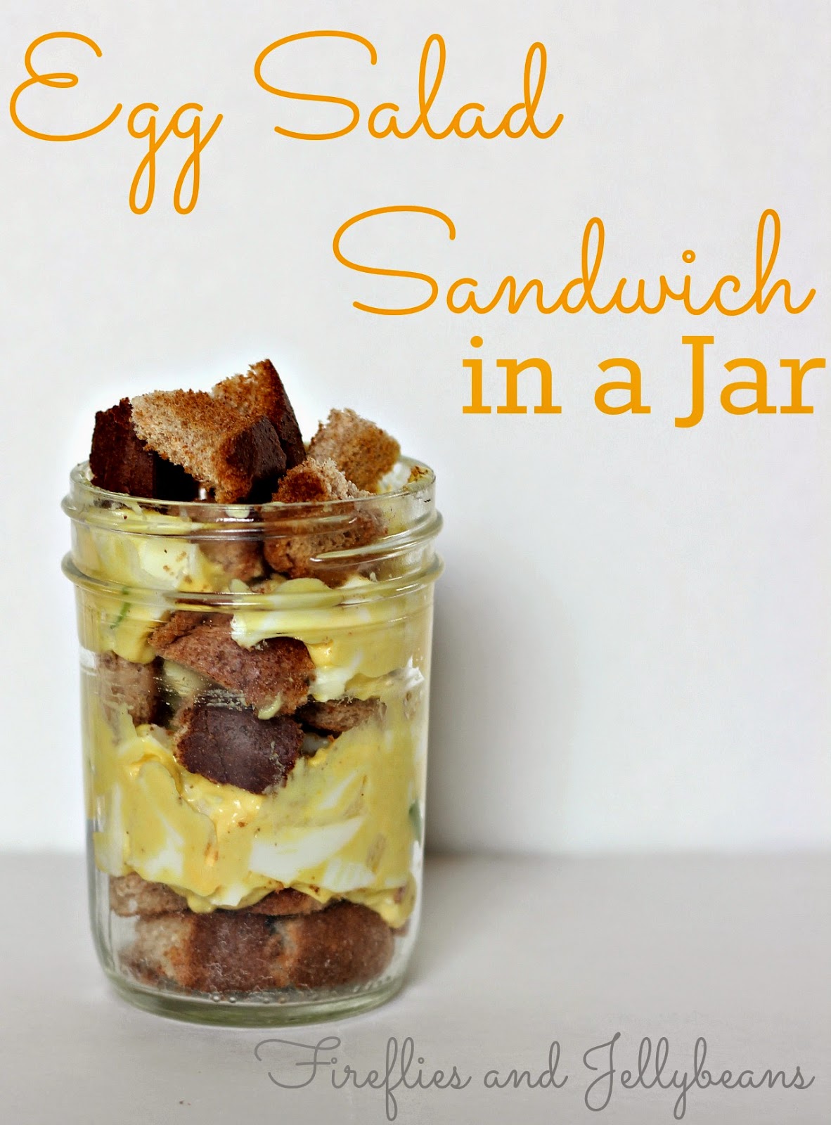 5. Layer your Jar with the bread cubes first, then add the egg salad on top, then more bread cubes, another layer of egg salad, and top off with more bread cubes.