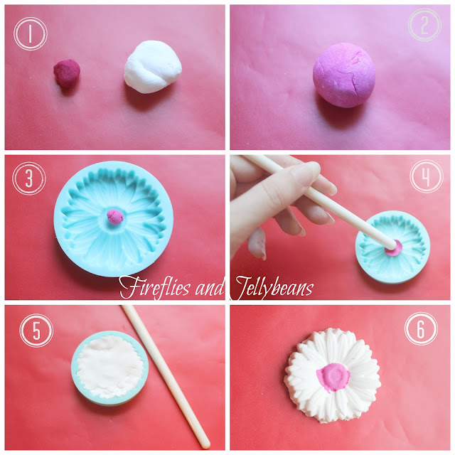 3. Choose a color for the center and place a small ball in the center of the mold.