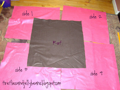 You need to cut out 4 sides and 1 roof. I did not have lining on the inside of my play house. You will need 4 more sides and another roof if you are going to do that... but I am not going to give directions on how to do the lining since I did not do that.