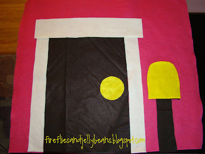 3. Iron the freezer paper (wax side down) to where you want you word to be. Make sure you iron is set to WOOL setting for felt (or it will melt... I know I melted some on my other felt house!) Make sure all your letters are stuck to the felt.