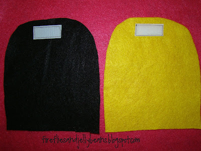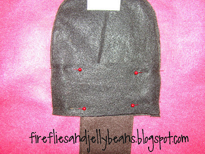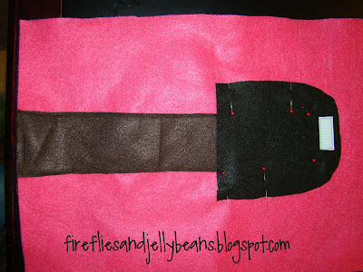 Now place the black piece with the Velcro side up on the side, pin and sew.