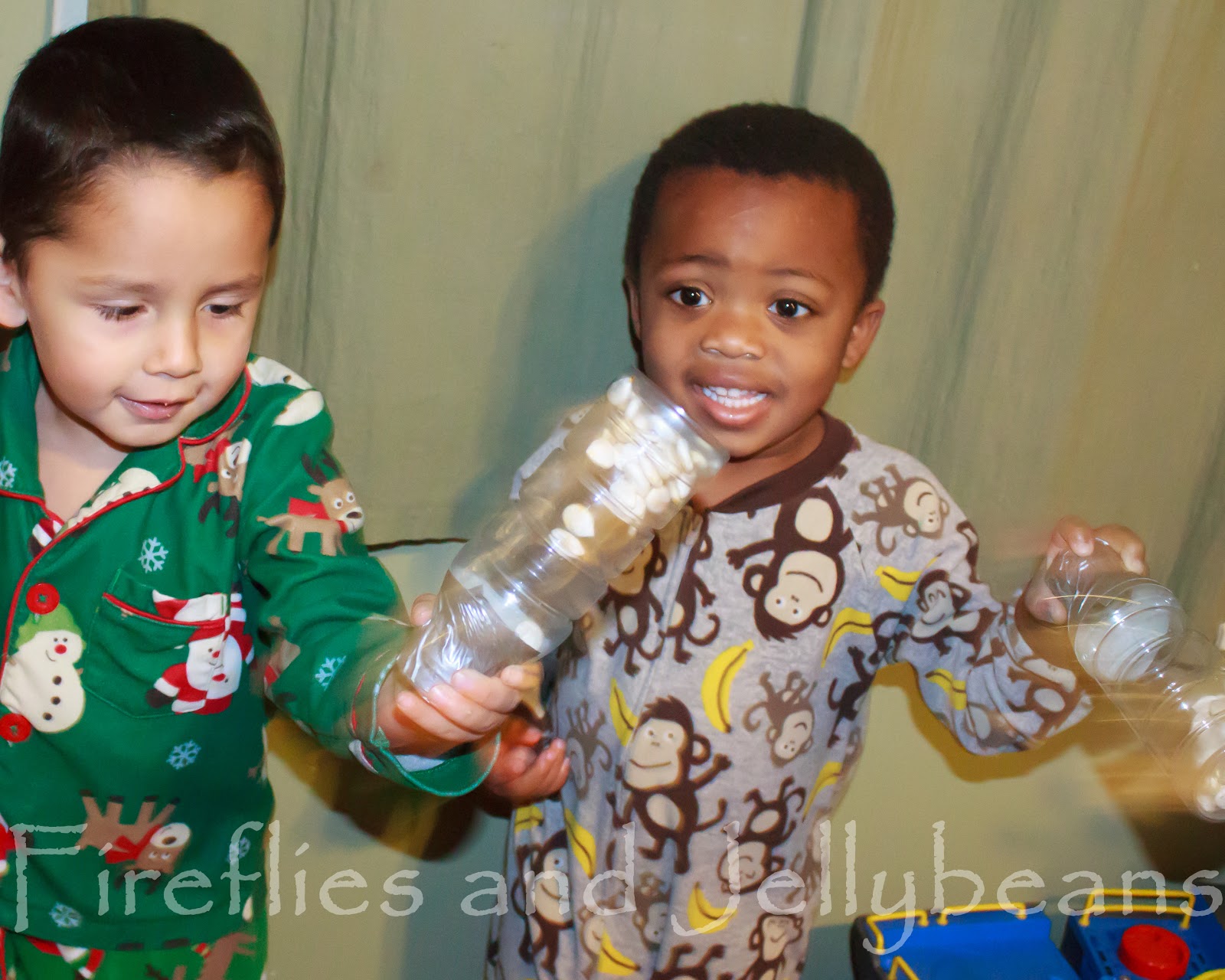 3. Find a bottle or container - I happened to have these small apple juice bottles. Anything a child can easily hold in their hand and shake, will work fine.