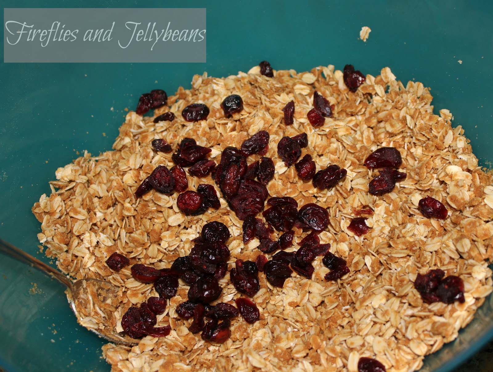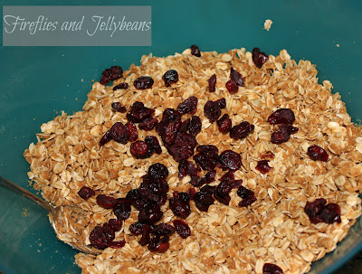 4. Pour peanut butter mixture over the oats in a mixing bowl and stir to coat.