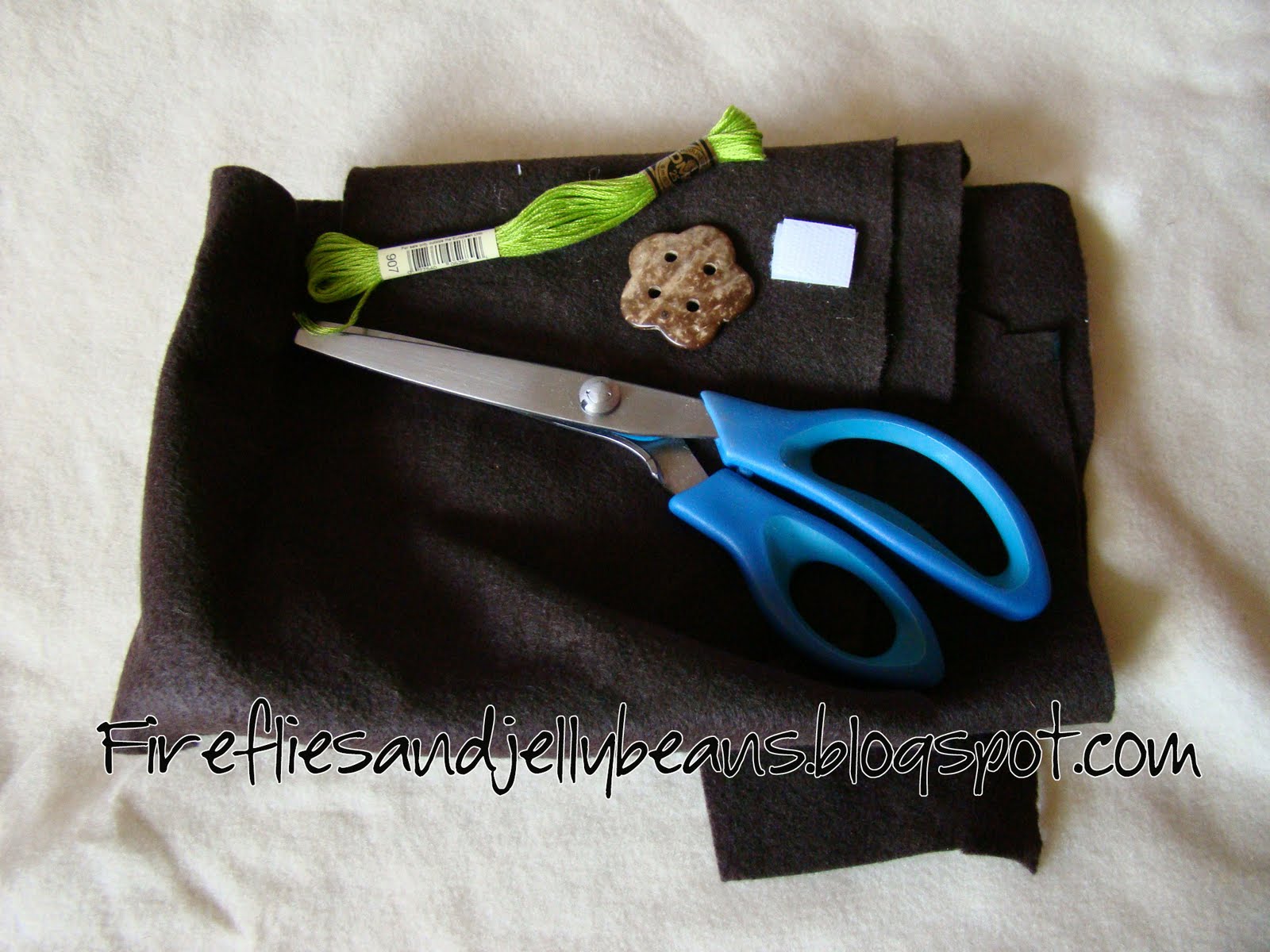 I sewed a button on my strap so that it would look like I had a button closer and not a Velcro closer... it is up to you if you want to add this step!