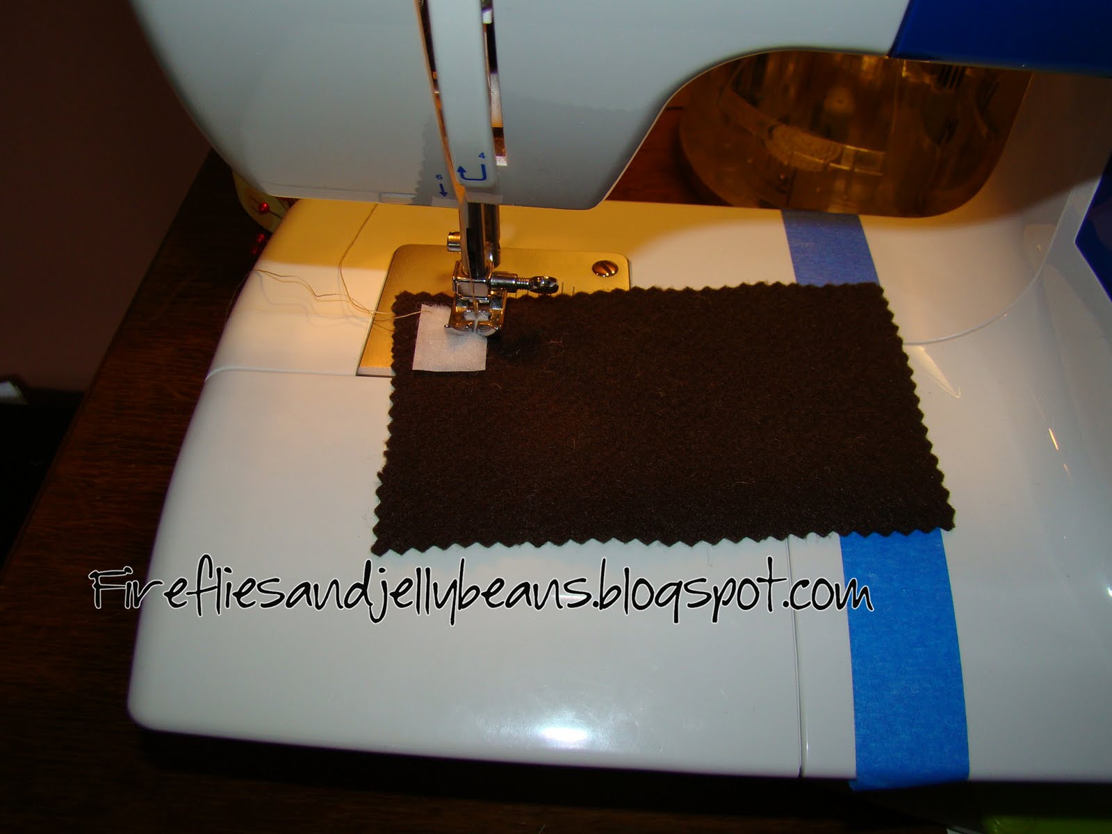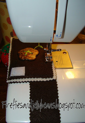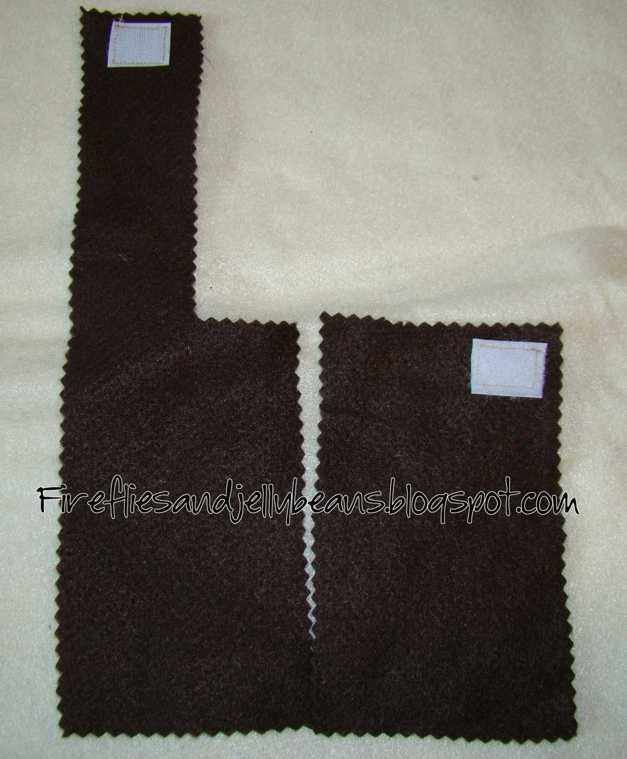 2. Sew your Velcro to the TOP side of both the main color rectangle and strap
