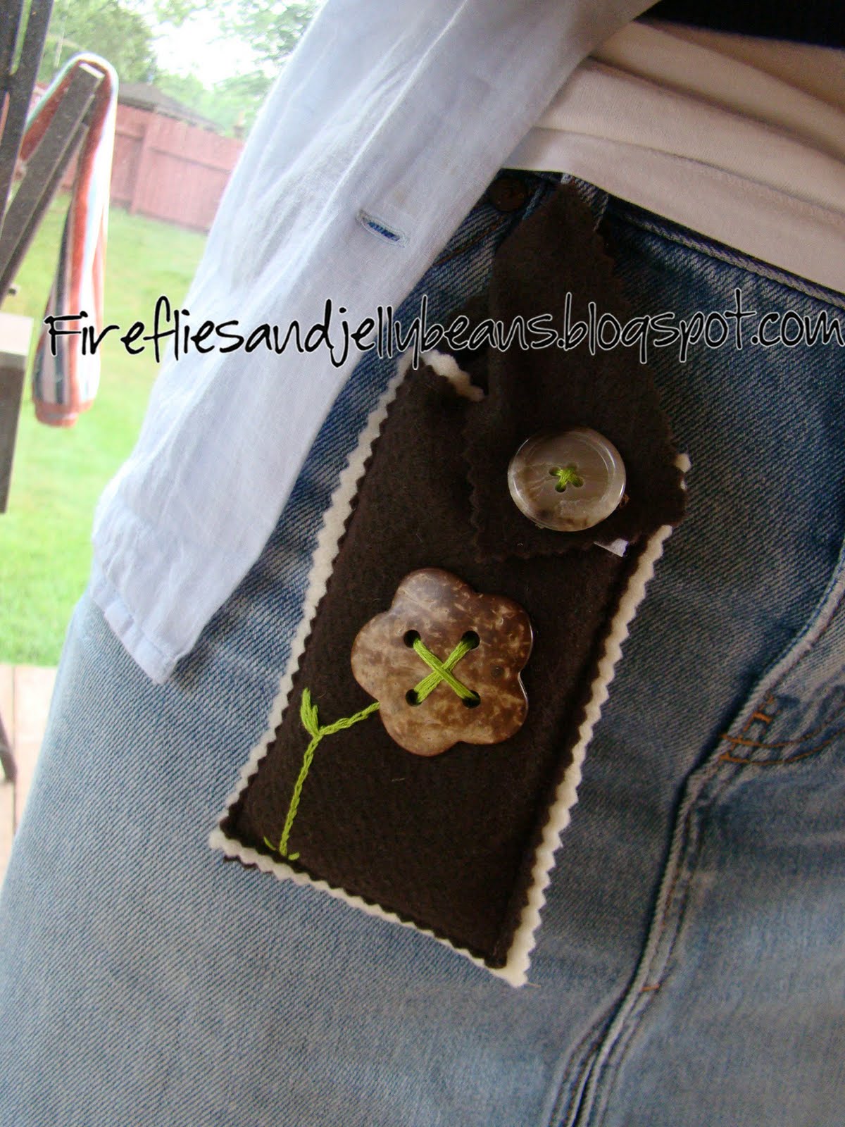 This little pocket helps you bring your cell phone with you everywhere and still look cute! It also would work great for an Ipod.