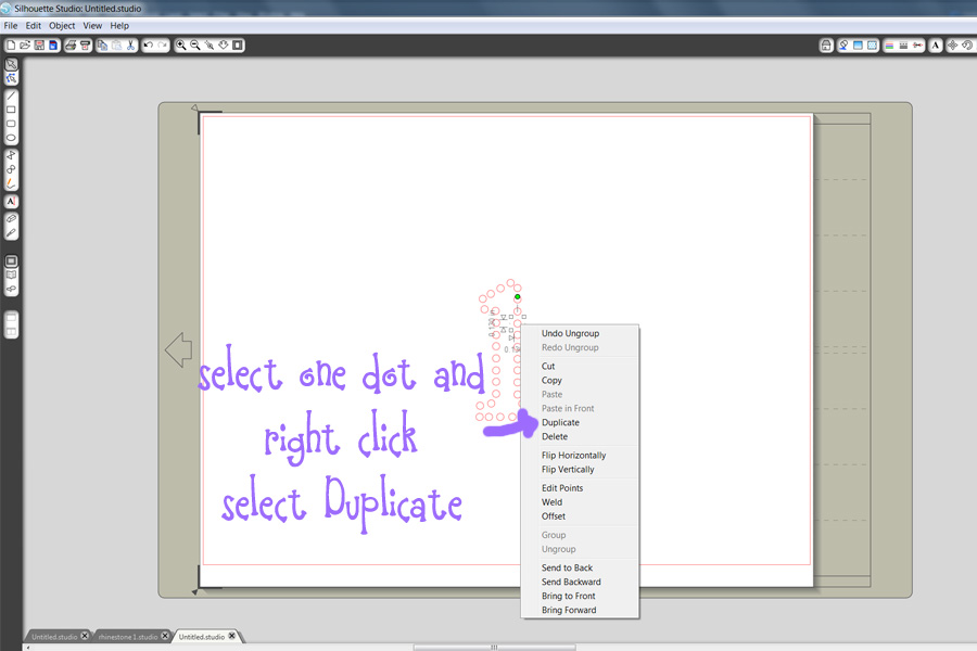 Now select one of your little dots (do NOT resize!!!) and right click and select duplicate. This will give you another dot... repeat for at least 12 more dots