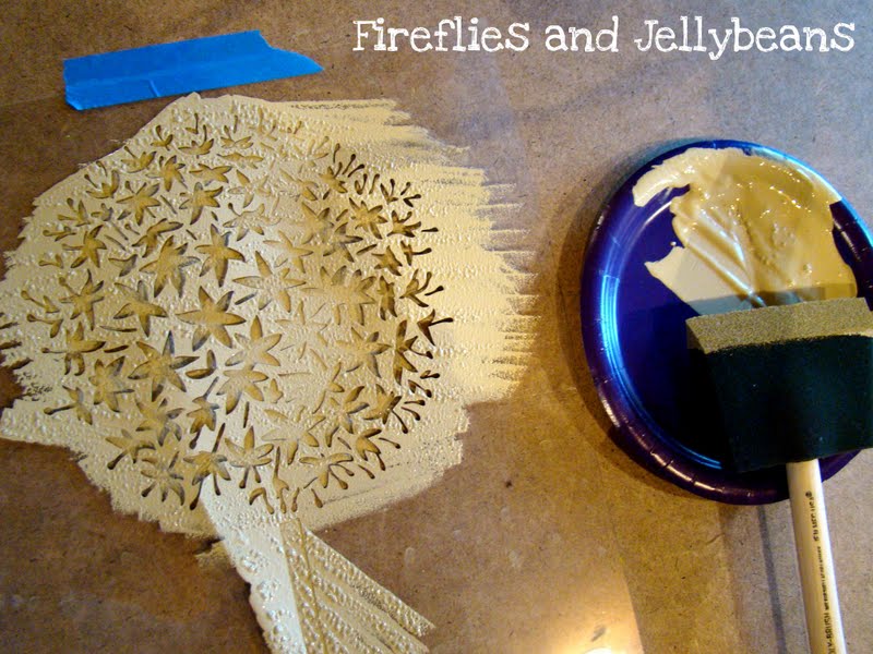 2. Use a sponge brush and dab (up and down motion) the paint over the stencil.