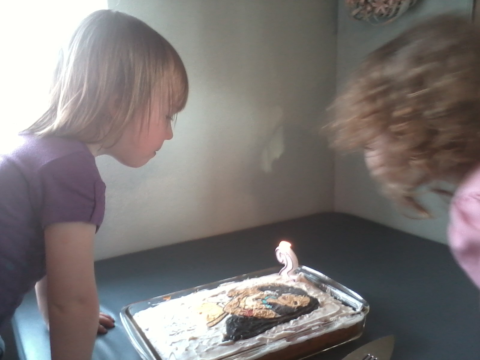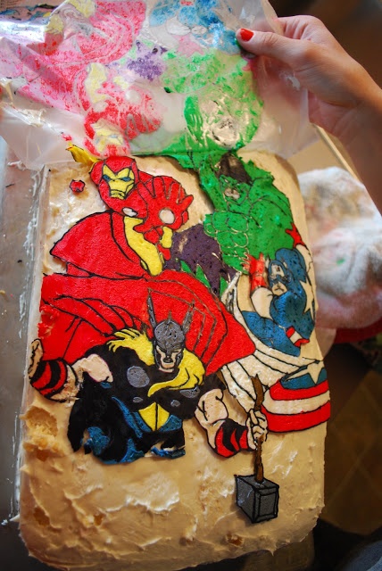 Now, I did this after bed time the day before the eating of the cake and put it in the fridge over night. Proooooobably should have done it during "quiet time" and put it in the freezer for the shorter period of time. (Michelle actually addresses this same thing in her tutorial.)