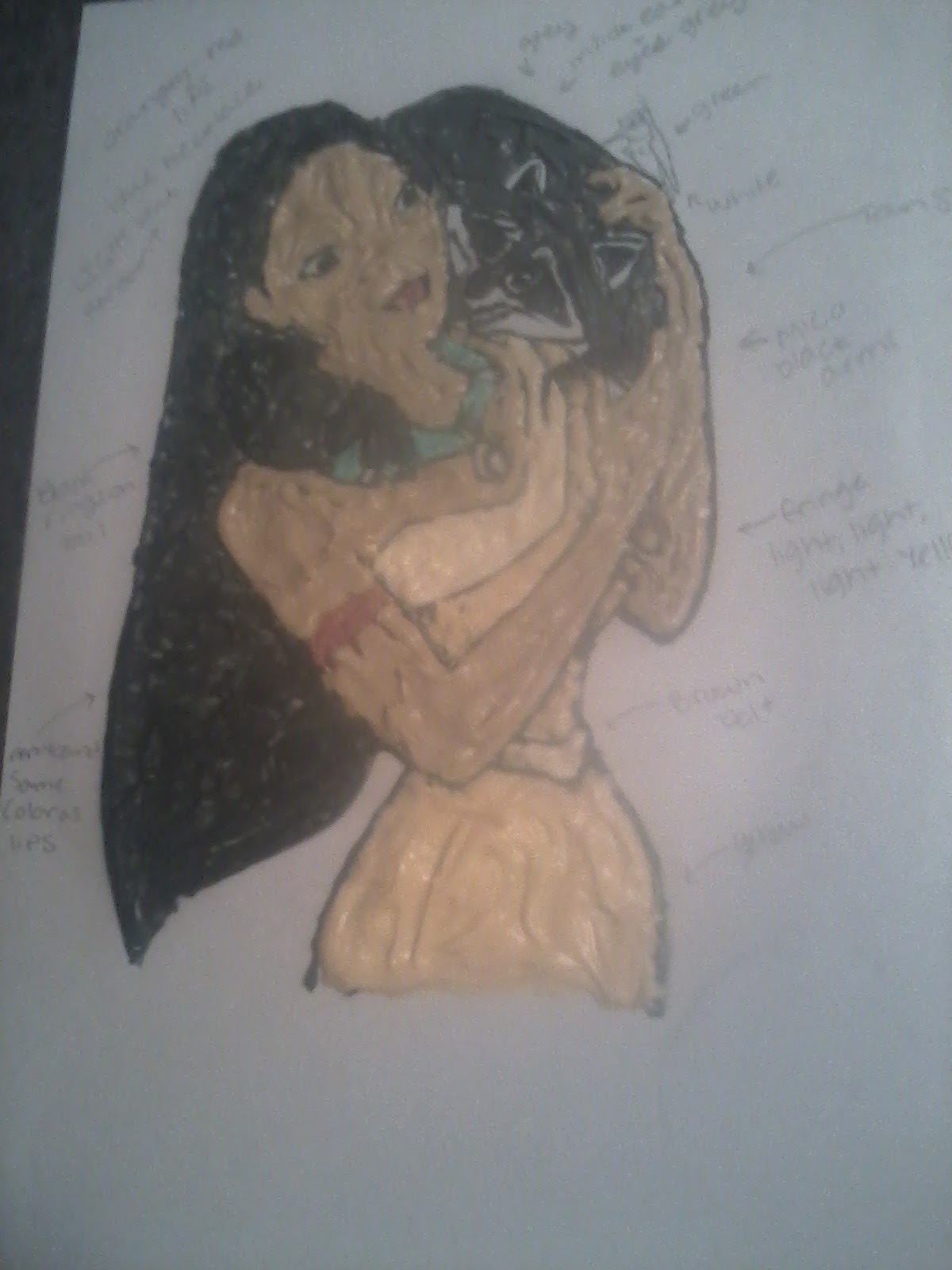 I printed off a Pocahontas coloring page. I kept a picture of Pocahontas pulled up on my laptop as I worked, I felt like I had memory loss when put to the test of.. well, remembering the colors!